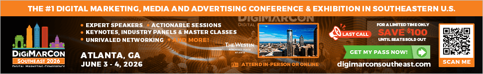 The 8th Annual DigiMarCon Southeast—the leading Digital Marketing, Media, and Advertising Conference & Exhibition in the Southeastern United States—returns June 3rd to 4th, 2026, to the luxurious Westin Peachtree Plaza Atlanta Hotel in Atlanta, Georgia. Join industry leaders, innovators, and peers in-person or online for 2 action-packed days of cutting-edge strategies, emerging trends, and game-changing technologies in AdTech, MarTech, SaaS, and more.